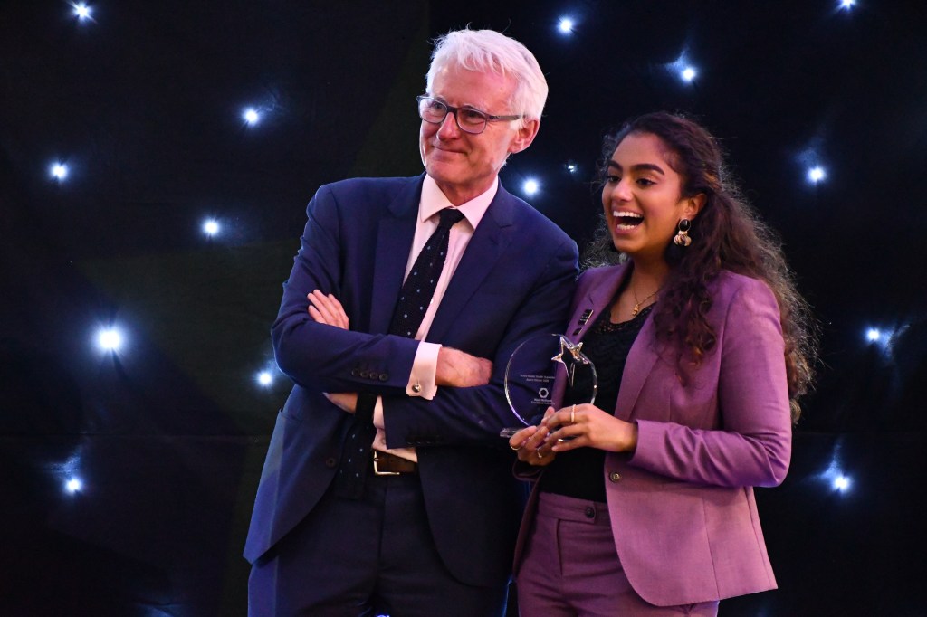 In early 2020, Sophia was shortlisted for the West Midlands Combined Authority Thrive Mental Health Star Award in the ‘Young Person’ category. She went on to win the highest award of the night, the Super Star Award, and has therefore been recognised on a regional level for her work advocating for the mental health rights of young people. She is pictured here with Sir Norman Lamb MP.